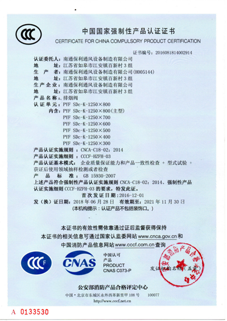 南通保利近30年載專注生產3c軸流式風機 屋頂采光排煙天窗 3c消防排煙風機,已通過ISO9001-2000質量管理體系認證。